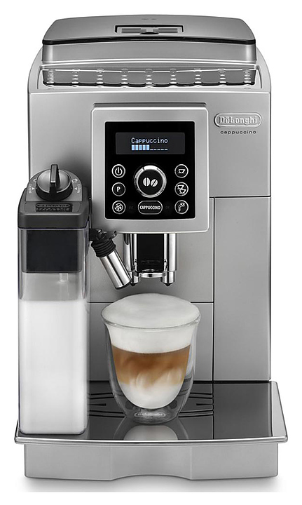 Автоматическая кофемашина Delonghi ECAM 23.464.S используется на предприятиях общественного питания, в офисах, отелях и частных квартирах для приготовления кофе эспрессо, капучино, латте и других видов кофейных напитков. Модель оснащена 2-строчным текстовым дисплеем с иконками и встроенным автоматическим капучинатором с запатентованной системой De'Longhi LatteCrema для получения нежной взбитой пенки одним нажатием кнопки. Особенности: