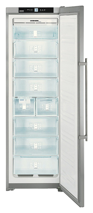 Морозильник Liebherr SGNes 3011 класса Premium предназначен для заморозки и длительного хранения продуктов и полуфабрикатов в частных домах, квартирах, отелях и офисах. Модель оснащена сенсорным управлением, дисплеем MagicEye и цифровой индикацией температуры. Дверь выполнена из нержавеющей стали с покрытием SmartSteel, боковые стенки и ручка - из нержавеющей стали, полки - из закаленного стекла. Морозильная камера: