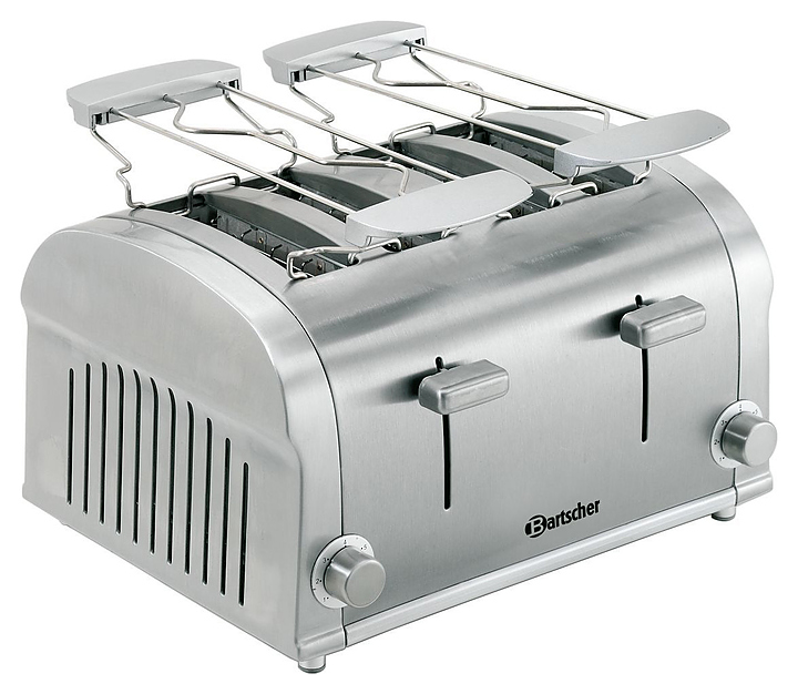 Тостер Bartscher TS40 предназначен для поджарки и разогрева кусочков хлеба, сэндвичей и булочек на предприятиях общественного питания и торговли. Модель оснащена 2 рычагами управления для двух пазов и 2 вынимаемыми поддонами для крошек. Корпус выполнен из нержавеющей стали. В комплект поставки входят 2 съемные подставки для подогрева булочек. Особенности: