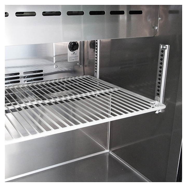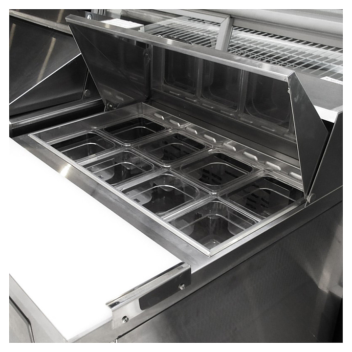 Стол для сэндвичей Turbo air FSU-72 состоит из разделочной доски, на которой можно обрабатывать ингредиенты, и камеры, предназначенной для охлаждения и кратковременного хранения продуктов для приготовления сэндвичей на предприятиях пищевой промышленности, общественного питания и торговли. Корпус выполнен из нержавеющей стали с применением пожаробезопасных стенок толщиной 60 мм и уплотнения из теплоэффективного АБС-пластика (акрилонитрилбутадиенстирола), не пропускающего конденсата, оборотная сторона и низ - из гальванизированной стали, пол - из нержавеющей стали с алюминиевыми вставками по бокам и сзади, разделочная доска - из пищевого LDPE (полиэтилена низкой плотности высокого давления), регулируемые полки - из толстой стальной проволоки с виниловым покрытием. В комплект поставки входят 18 гастроемкостей GN 1/6 глубиной 150 мм. Под заказ возможна модицификация данного оборудования для использования на морских судах. Особенности: