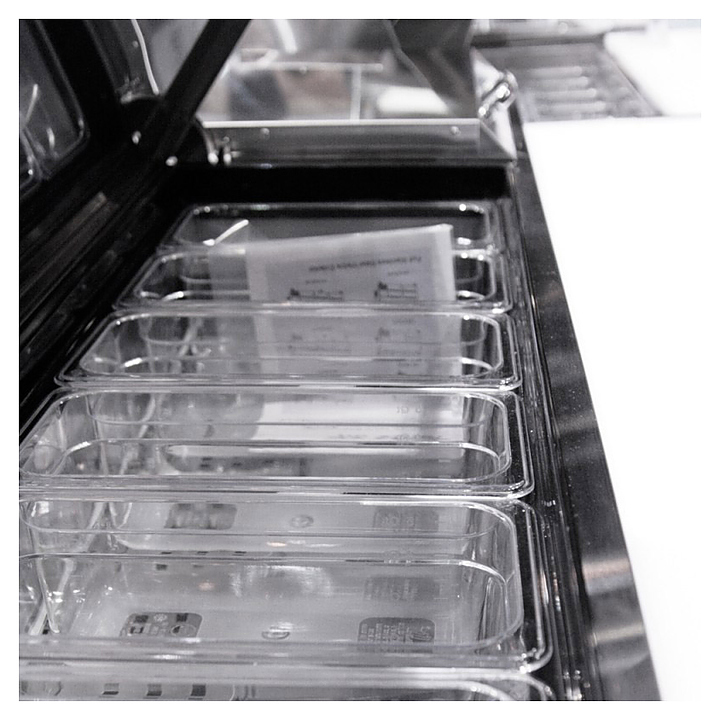 Стол для пиццы Turbo air FPT-67-D2-4 состоит из разделочной доски, на которой можно обрабатывать ингредиенты, и камеры, предназначенной для охлаждения и кратковременного хранения продуктов для приготовления пиццы на предприятиях пищевой промышленности, общественного питания и торговли. Корпус выполнен из нержавеющей стали с применением пожаробезопасных стенок толщиной 60 мм и уплотнения из теплоэффективного АБС-пластика (акрилонитрилбутадиенстирола), не пропускающего конденсата, оборотная сторона и низ - из гальванизированной стали, пол - из нержавеющей стали с алюминиевыми вставками по бокам и сзади, разделочная доска - из пищевого LDPE (полиэтилена низкой плотности высокого давления). В комплект поставки входят 9 гастроемкостей GN 1/3 глубиной 150 мм. Под заказ возможна модицификация данного оборудования для использования на морских судах. Особенности: