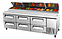 Стол для пиццы Turbo air FPT-93-D2-6 состоит из разделочной доски, на которой можно обрабатывать ингредиенты, и камеры, предназначенной для охлаждения и кратковременного хранения продуктов для приготовления пиццы на предприятиях пищевой промышленности, общественного питания и торговли. Корпус выполнен из нержавеющей стали с применением пожаробезопасных стенок толщиной 60 мм и уплотнения из теплоэффективного АБС-пластика (акрилонитрилбутадиенстирола), не пропускающего конденсата, оборотная сторона и низ - из гальванизированной стали, пол - из нержавеющей стали с алюминиевыми вставками по бокам и сзади, разделочная доска - из пищевого LDPE (полиэтилена низкой плотности высокого давления). В комплект поставки входят 12 гастроемкостей GN 1/3 глубиной 150 мм. Под заказ возможна модицификация данного оборудования для использования на морских судах. Особенности: