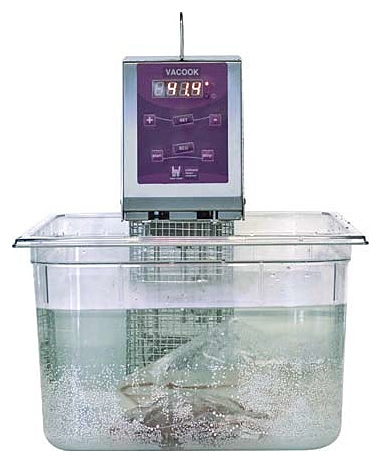 Технология Sous Vide сочетает в себе приготовление в вакуумной упаковке и при низких температурах, быстрое охлаждение и регенерацию. Преимуществами Sous Vide является получение продуктов высокого качества, сокращение потерь при тепловой обработке и увеличение срока хранения. В вакуумной упаковке сохраняется вкус, аромат и полезные микроэлементы. Запахи различных продуктов не смешиваются. Этапы работы технологии Sous Vide: