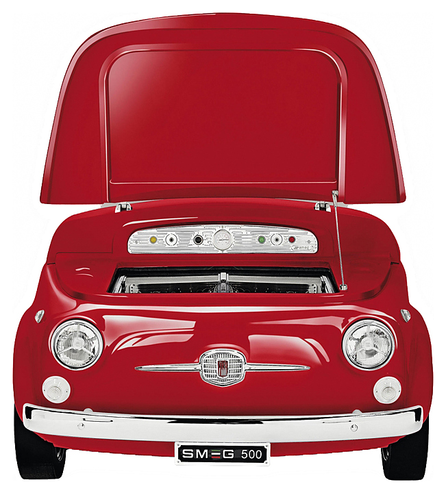 Холодильник SMEG500 - это продукт, созданный совместными усилиями компаний Smeg и Fiat. Эксклюзивный дизайн модели повторяет линии капота автомобиля Fiat 500 и способен придать уникальность любому помещению. Это настоящая находка для коллекционеров или же владельцев lounge баров. Особенности: