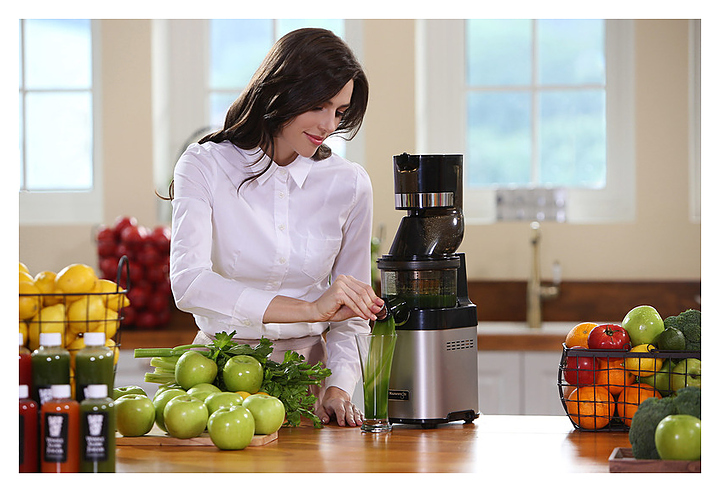 Соковыжималка Kuvings Whole Slow Juicer Chef CS600 используется в барах, кафе, ресторанах и других местах общественного питания с большой проходимостью посетителей для отжима и получения сока из твёрдых и мягких овощей, фруктов, орехов, ягод, трав, иголок хвойных растений, пророщенных семян овса, пшеницы, ржи и чечевицы. Корпус выполнен из нержавеющей стали, шнек - из пластика "трайтан", чаша для сбора сока - из термопластикого материала "ультем", верхняя и нижняя крышки - из пластика. В комплект поставки входят 2 насадки и набор стрейнеров (смузи, сорбет). Особенности:
