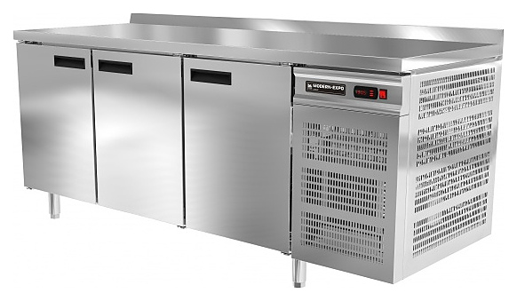 Холодильный стол Modern-Expo NRACAB.000.000-00 A SK серии Беринг предназначен для раскатки теста, обработки ингредиентов для приготовления блюд, охлаждения и краткосрочного хранения скоропортящихся продуктов и напитков на предприятиях общественного питания и торговли. Цельнозаливной корпус выполнен из нержавеющей стали AISI 430, рабочая поверхность - из нержавеющей стали AISI 304, усилена ЛДСП толщиной 18 мм, задняя стенка - из оцинкованной стали, изоляция - из пенополиуретана. Особенности: