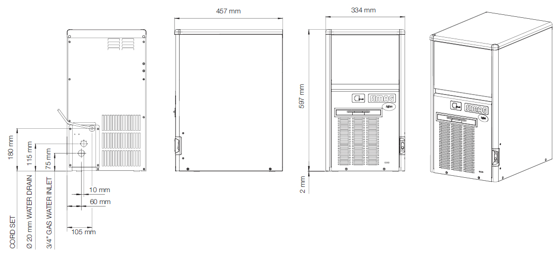 Льдогенератор SIMAG SDE 30 AS используется на предприятиях общественного питания и торговли для приготовления пальчикового льда, предназначенного для охлаждения коктейлей и напитков или приготовления шейков и смузи. Корпус выполнен из нержавеющей стали. Особенности: