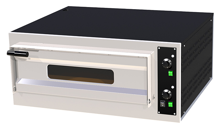 Печь для пиццы Azimut B 4+Thermometer серии Basic используется на предприятиях общественного питания и торговли для выпечки пиццы и хлебобулочных изделий, требующих высокой температуры приготовления. Модель оснащена аналоговым термометром, термостатом, внутренней подсветкой, жаропрочным смотровым окном в дверце и 1 короткой ручкой двери. Корпус выполнен из оцинкованной крашеной стали чёрного цвета, пол камеры выложен огнеупорным камнем. Особенности: