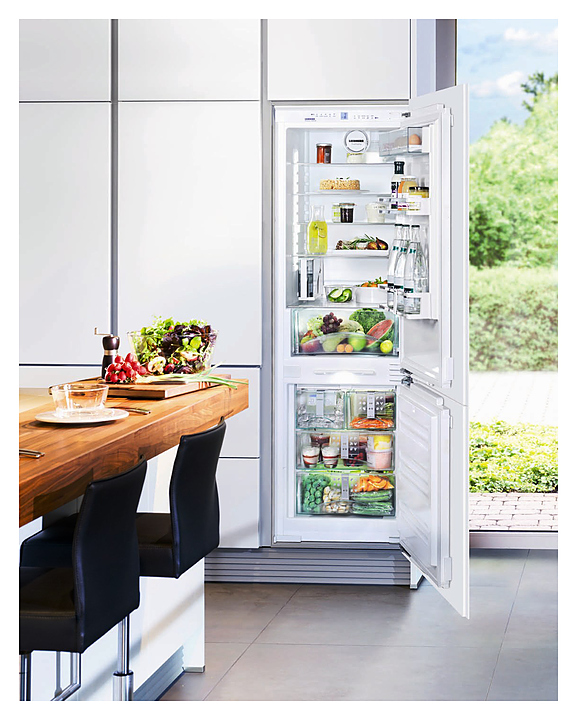 Встраиваемый холодильник Liebherr ICNP 3356 класса Premium предназначен для заморозки, охлаждения и длительного хранения продуктов и полуфабрикатов в частных домах, квартирах, отелях и офисах. Модель оснащена сенсорным управлением, жидкокристаллическим дисплеем MagicEye и цифровой индикацией температуры. Полки выполнены из стекла. Холодильная камера: