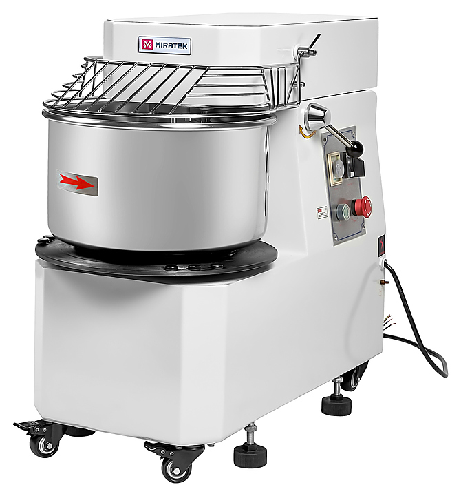Спиральный тестомес Miratek PRS-40 используется в пекарнях, кондитерских, на предприятиях общественного питания и торговли для замешивания теста с различной основой и консистенцией для выпечки большого ассортимента хлебобулочной продукции из пшеничного, ржаного и ржано-пшеничного теста. Особенности: