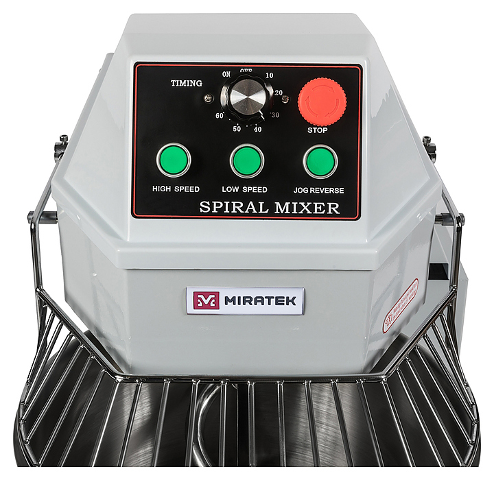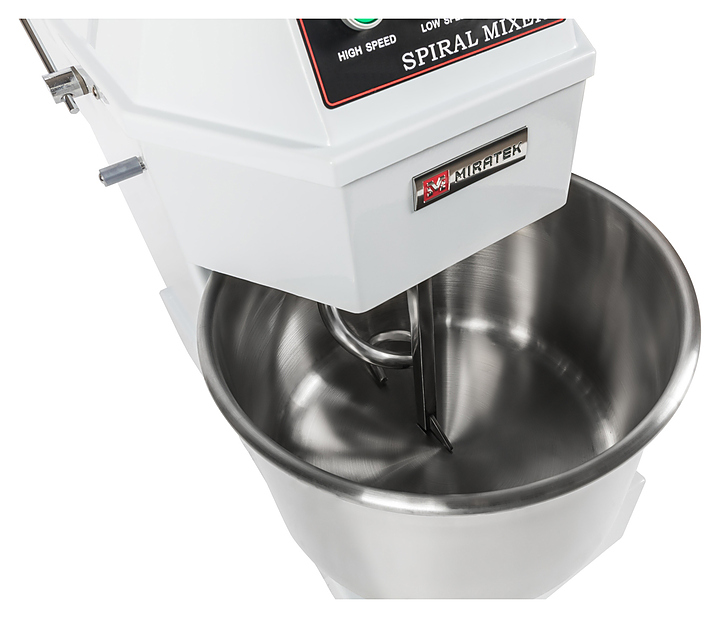 Спиральный тестомес Miratek PX-20 используется в пекарнях, кондитерских, на предприятиях общественного питания и торговли для замешивания теста с различной основой и консистенцией для выпечки большого ассортимента хлебобулочной продукции из пшеничного, ржаного и ржано-пшеничного теста. Особенности: