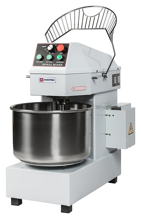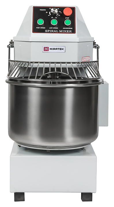 Спиральный тестомес Miratek PX-40 используется в пекарнях, кондитерских, на предприятиях общественного питания и торговли для замешивания теста с различной основой и консистенцией для выпечки большого ассортимента хлебобулочной продукции из пшеничного, ржаного и ржано-пшеничного теста. Особенности: