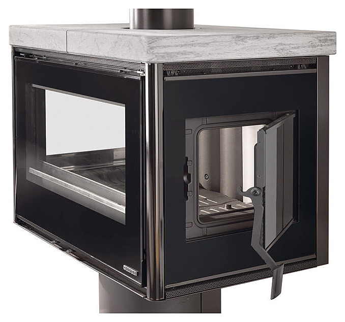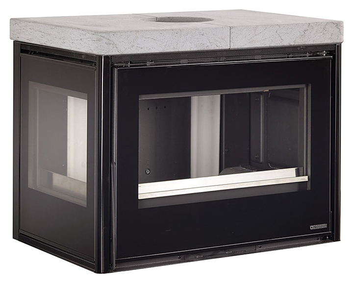 Дровяная печь-камин La Nordica Astrid серии Top Design предназначена для создания тепла в помещении в квартирах, частных домах и отелях. Модель оснащена системой воздухозаборников, принимающей свежий воздух для горения, системой третичного дожига, позволяющей сократить выбросы, системой чистого стекла, предотвращающей образование отложений, съемным зольным ящиком и боковой загрузкой дров. Меньшее стекло можно установить на другую сторону. Стены камеры выполнены из специального материала Nordiker, обладающего высокой теплоемкостью и позволяющего достигать высоких температур сгорания с низким объемом выбросов, дверка - из чугуна. Оборудование облицовано натуральным камнем. Дополнительные характеристики: