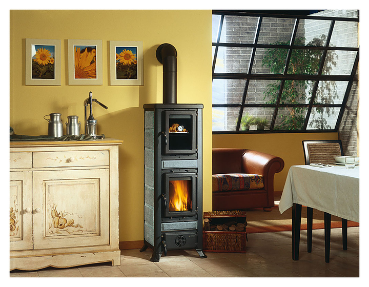 Дровяная печь-камин La Nordica Fulvia Forno Natural Stone серии F.D.G. предназначена для создания тепла в помещении в в квартирах, частных домах и отелях. Модель оснащена системой третичного дожига, позволяющей сократить выбросы, системой чистого стекла, предотвращающей образование отложений, и духовкой. Духовка, дверка и верхняя плита выполнены из эмалированного чугуна. Оборудование облицовано натуральным камнем. Дополнительные характеристики: