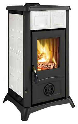 Дровяная печь-камин La Nordica Gemma Elegance серии F.D.G. предназначена для создания тепла в помещении в в квартирах, частных домах и отелях. Модель оснащена системой третичного дожига, позволяющей сократить выбросы, и системой чистого стекла, предотвращающей образование отложений. Дверка и верхняя плита выполнены из эмалированного чугуна. Оборудование облицовано майоликой. Дополнительные характеристики: