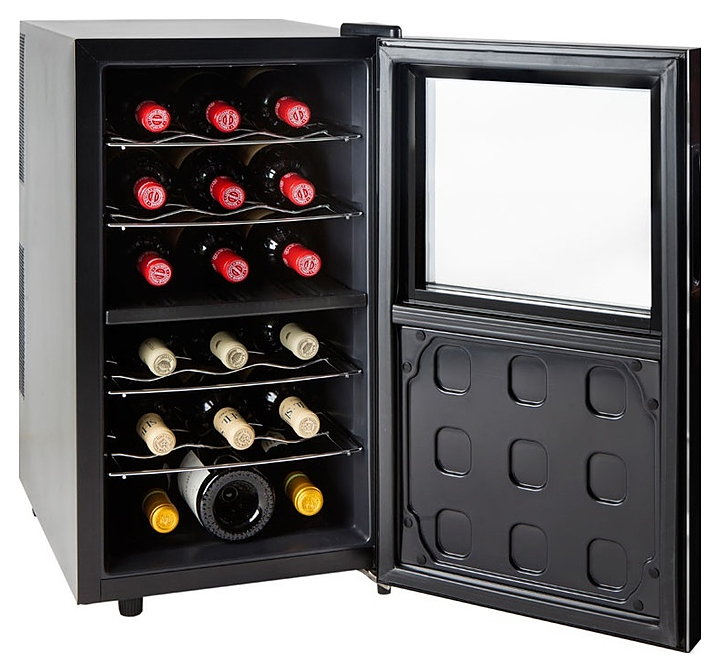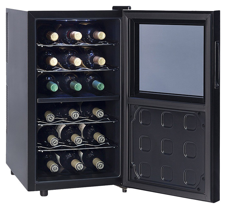 Винный шкаф Cavanova CV018-2T создает оптимальные условия для сохранения всех вкусовых свойств разливного вина в барах, ресторанах, специализированных магазинах, частных домах или квартирах. Модель оснащена светодиодной подсветкой мягкого синего цвета. Корпус выполнен из окрашенного металла, верхняя часть двери - из двойного тонированного стеклопакета с УФ-фильтром, нижная часть двери - из стеклопакета с зеркальным покрытием, полки - хромированые. Особенности: