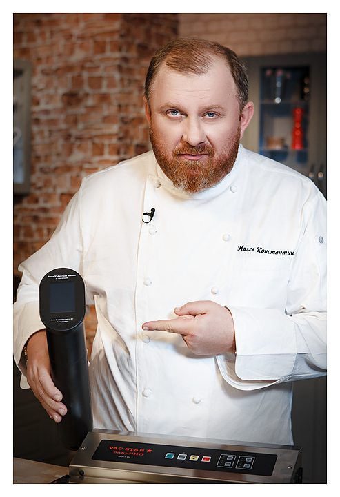 Ротационный кипятильник VAC-STARSousVide Chef Home используется в домашних условиях и позволяет готовить деликатесные блюда по технологии Sous Vide, придавая им нежнейший вкус и сохраняя все важные микроэлементы продуктов. Особенность данного оборудования состоит в том, что продукты перед непосредственным приготовлением помещают в упаковку, из которой полностью удаляется воздух. Затем вакуумные пакеты помещают в воду и готовят. Циркуляционный нагрев равномерно распределяет температуру в емкости. Корпус выполнен из высококачественного безопасного пищевого пластика, нагревательный элемент - из нержавеющей стали. Особенности: