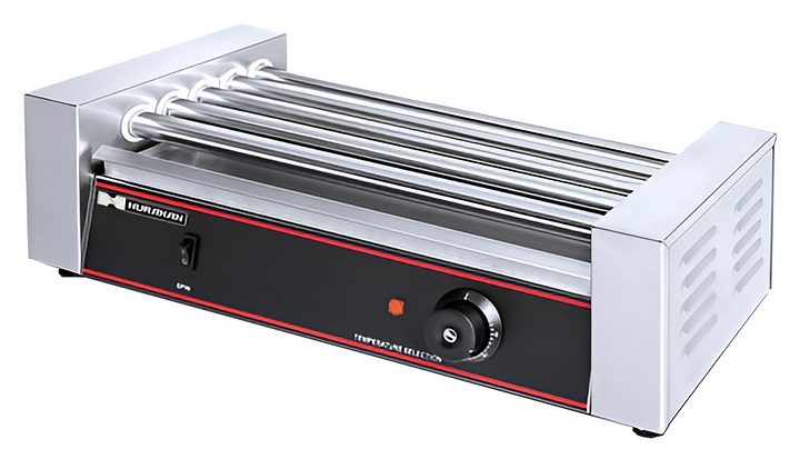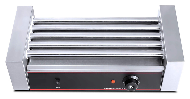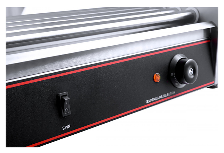 Роликовый гриль Hurakan HKN-GW5M предназначен для обжаривания сосисок и сарделек, мясных и рыбных рулетов на предприятиях общественного питания и торговли. Модель оснащена регулируемым термостатом и индикатором нагрева. Корпус и ролики выполнены из нержавеющей стали. Дополнительные характеристики: