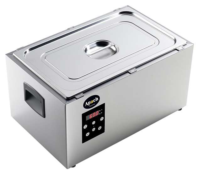 Термостат-ванна Apach ASV 1/1 GN предназначена для приготовления широкого спектра блюд по технологии Sous Vide на предприятиях общественного питания и торговли. Модель оснащена мощными нагревательными элементами с противоударным покрытием, дисплеем с индикацией рабочей температуры и удобными ручками для переноски. Корпус и емкость выполнены из нержавеющей стали. Особенности: