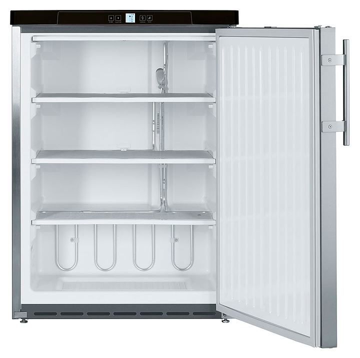 Морозильный шкаф Liebherr GGU 1500 предназначен для заморозки и длительного хранения продуктов и полуфабрикатов на предприятиях общественного питания и торговли. Модель оснащена электронным управлением и цифровой индикацией температуры. Внутренняя прокладка выполнена из белого полистирола, корпус, дверь и ручка - из нержавеющей стали, регулируемые ножки - из оцинкованной стали. Особенности: