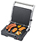 Пресс-гриль Gemlux GL-CG-01 предназначен для жарки, приготовления и разогрева блюд в частных домах и квартирах. Модель оснащена 2 съемными пластинами с антипригарным покрытием: нижняя гладкая и верхняя рифленая, 6 положениями по высоте и жиросборником. Корпус выполнен из нержавеющей стали, съемные пластины - из алюминия. Характеристики: