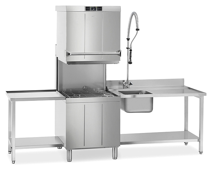 Купольная посудомоечная машина Smeg HTY625D серии Topline используется на предприятиях общественного питания и торговли для мойки столовых приборов, тарелок, стаканов, чашек и другой посуды. Модель оснащена электронной панелью управления. Корпус, моющие и ополаскивающие рукава выполнены из нержавеющей стали AISI 304. Комплектация: