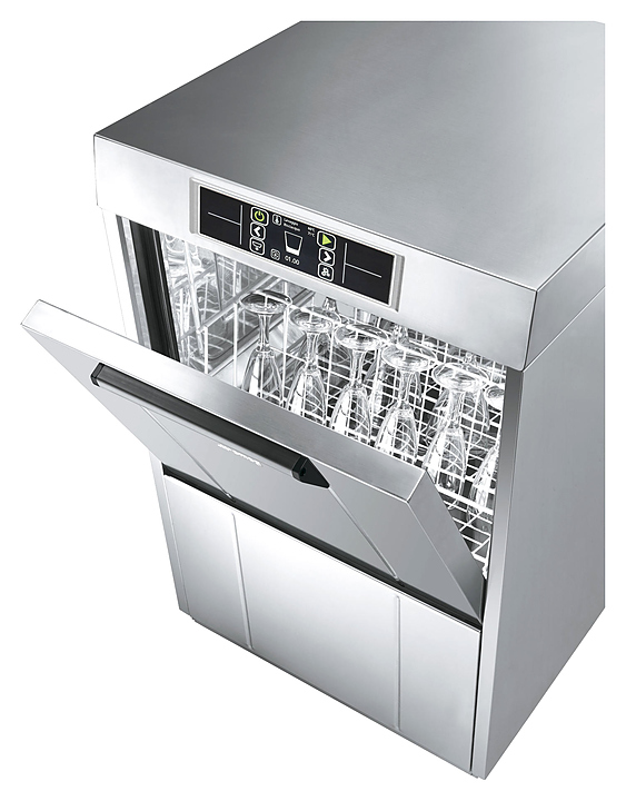 Стаканомоечная машина Smeg UG420DS серии Topline используется на предприятиях общественного питания и торговли для мойки стаканов, чашек и бокалов. Модель оснащена электронной панелью управления. Корпус, моющие и ополаскивающие рукава выполнены из нержавеющей стали AISI 304. Комплектация: