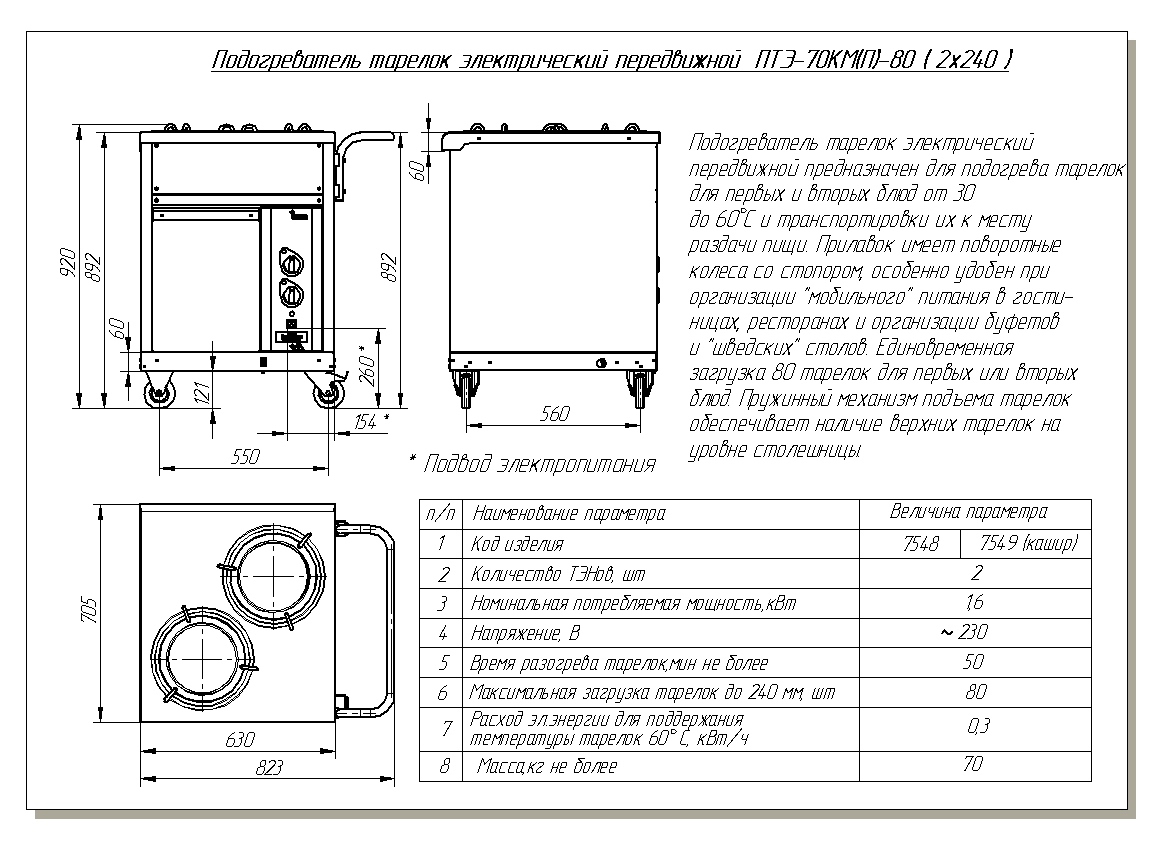 Прилавок для подогрева тарелок Abat ПТЭ-70КМ(П)-80 кашир.