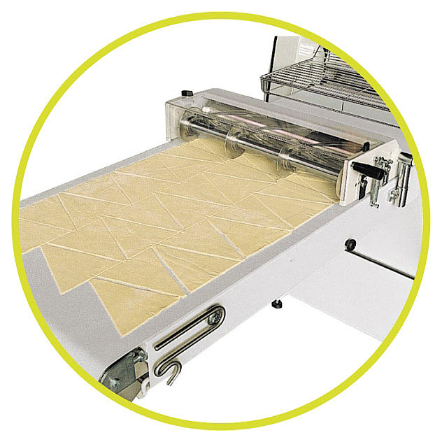 Тестораскаточная машина MAC.PAN MK600TC используется на предприятиях пищевой промышленности и общественного питания, в пекарнях и кондитерских для раскатки теста и формирования тестовых заготовок. Управление тестораскаточной машиной осуществляется с помощью педали. Корпус выполнен из окрашенной стали, поверхность раскатывающих валов - из полированной хромированной стали. В комплект поставки входит режущая станция с роликами для нарезки заготовок для круассанов. Валы приобретаются отдельно. Особенности: