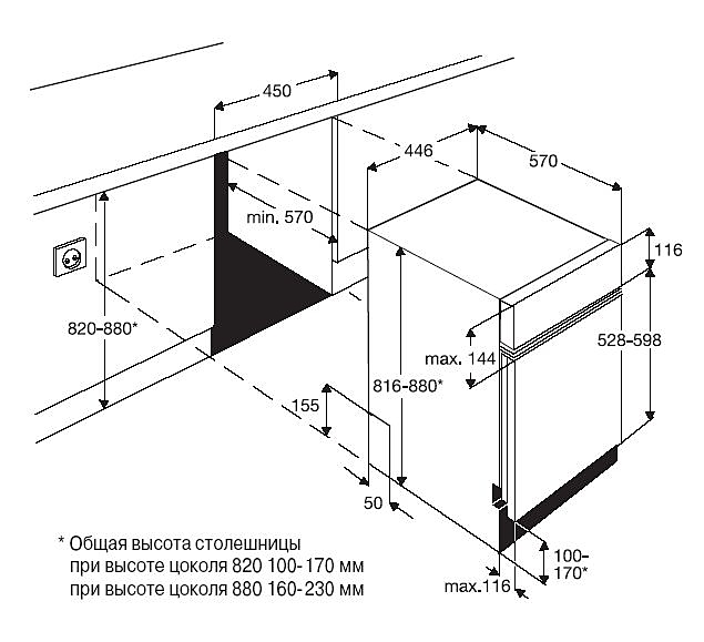 Встраиваемая посудомоечная машина с открытой панелью управления. Ширина 45 см
