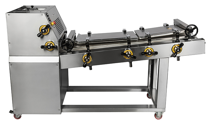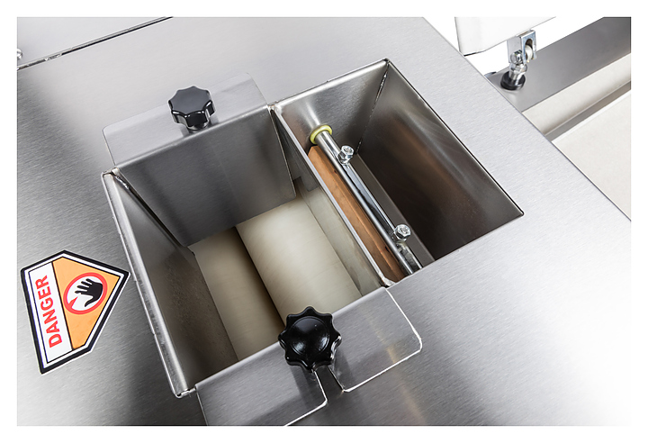 Тестозакаточная машина Danler WML-400 используется на предприятиях пищевой промышленности и общественного питания, в пекарнях и кондитерских для формирования тестовых заготовок для батонных изделий. Модель оснащена двойной формовочной головкой и 2 закаточными плитами. Корпус и сворачивающая тесто цепь изготовлены из нержавеющей стали, рабочие поверхности - из специализированных материалов, облегчающих работу с продуктами. Особенности:
