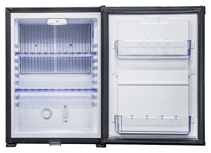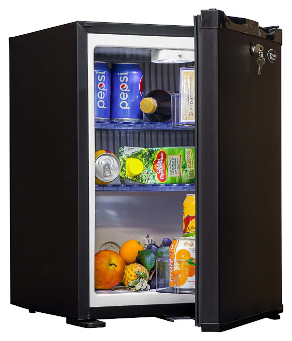 Минибар Cold Vine AC-40B предназначен для охлаждения и кратковременного хранения скоропортящихся продуктов и напитков в отелях, офисах и в домашних условиях. Модель оснащена механическим термостатом, глухой дверью, 2 пластиковыми полками, которые устанавливаются на 9 разных уровнях и автоматическим включением белой светодиодной подсветки. Корпус выполнен из металла, окрашенного в черный матовый цвет. В комплект поставки входит набор ключей от замка. Особенности: