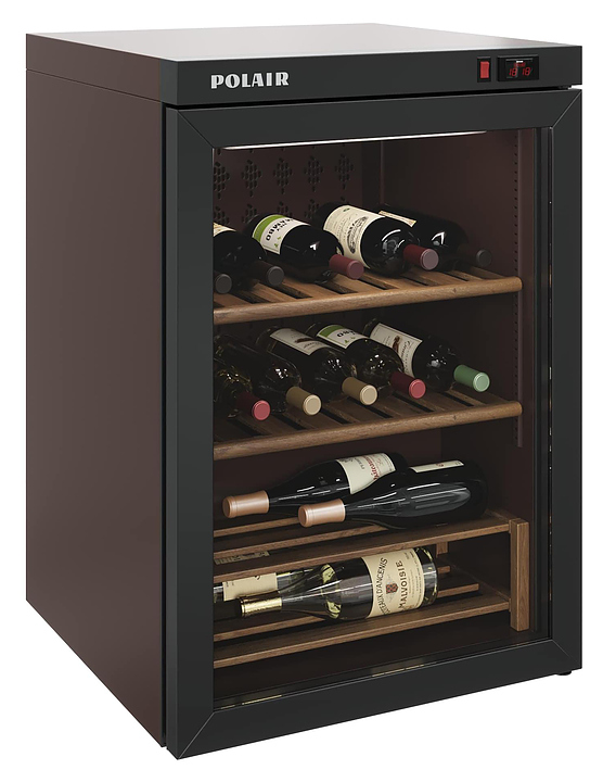 Винный шкаф POLAIR DW102-Bravo предназначен для демонстрации, хранения и создания оптимальных условий для сохранения всех вкусовых свойств разливного вина на предприятиях общественного питания, торговли, в барах, ресторанах, специализированных магазинах, частных домах или квартирах. Модель оснащена 2 навесными полками и нижней двухуровневой подставкой. Внешняя и внутренняя обшивка корпуса выполнена из окрашенной оцинкованной стали, полки - из дуба, дверца - из тонированного стекла с ИК и УФ защитой с рамой из алюминия черного цвета. Оборудование рассчитано на работу при температуре окружающей среды до 32 °С и относительной влажности воздуха до 60%. Особенности: