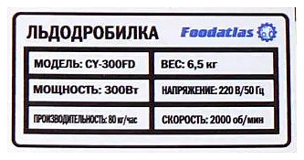 Льдодробитель Foodatlas CY-300FD используется на предприятиях общественного питания и торговли для дробления льда и получения ледяной крошки для коктейлей, алкогольных напитков и для декорирования блюд. Корпус выполнен из ABS-пластика, нож - из нержавеющей стали 420J. Дополнительные характеристики: