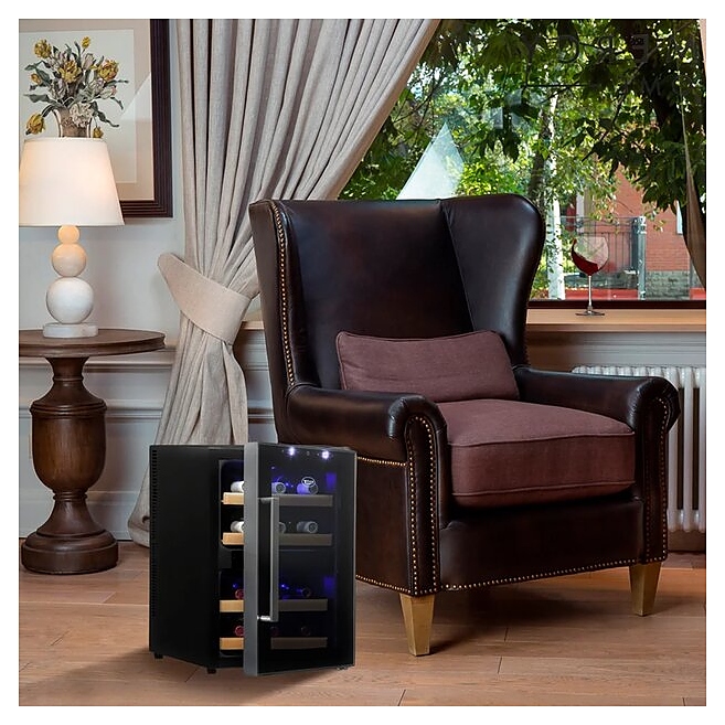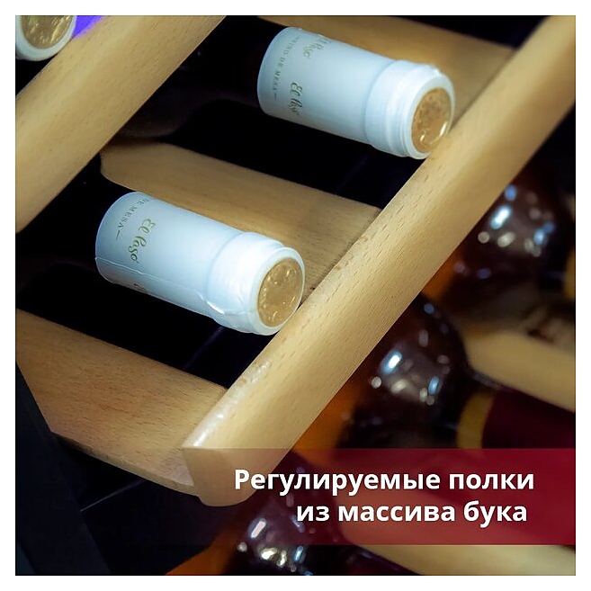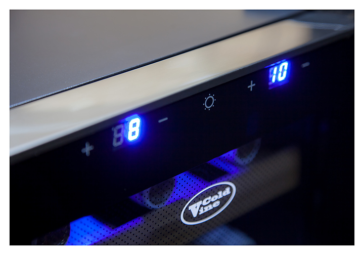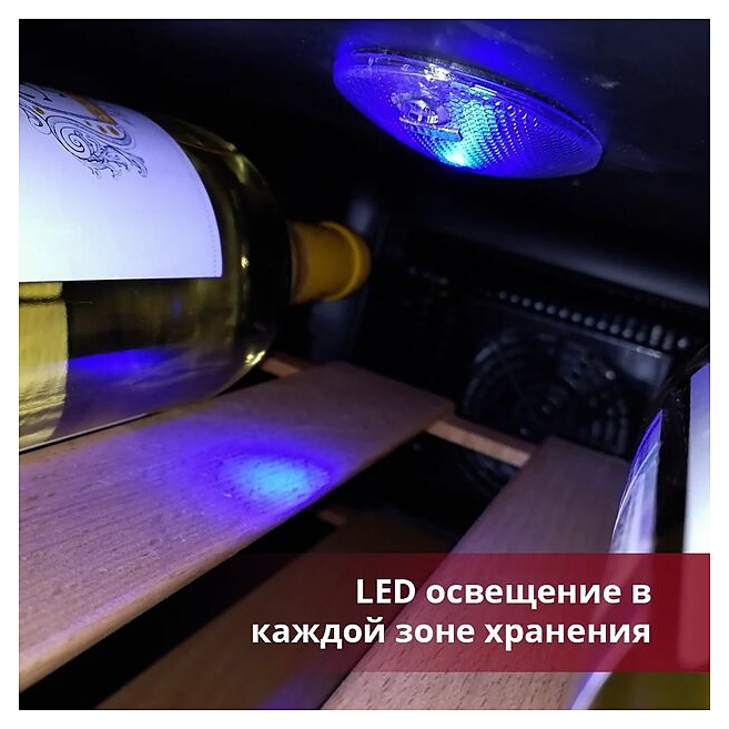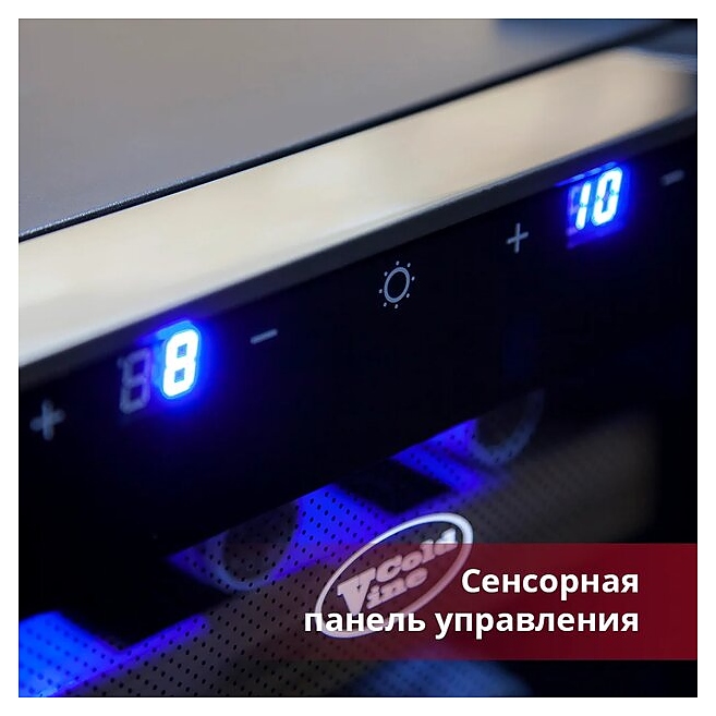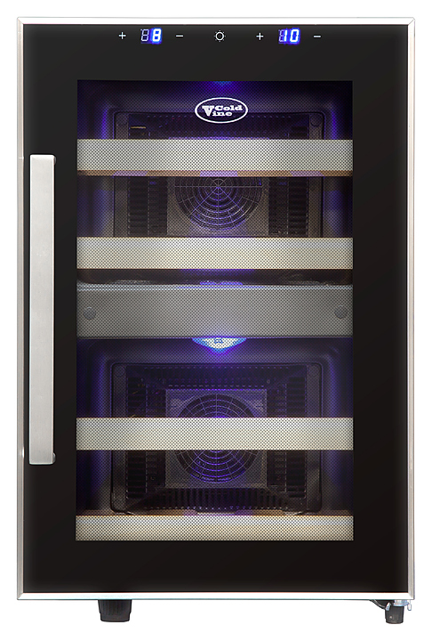 Винный шкаф Cold Vine С12-TBF2 создает оптимальные условия для сохранения всех вкусовых свойств разливного вина. Модель оснащена встроенными вентиляторами для каждой зоны, 4 деревянными полками, голубой светодиодной подсветкой и регулируемыми ножками. Корпус выполнен из окрашенной в черный цвет стали, дверь в черной раме и тонкой стальной окантовке - из прозрачного затемненного двойного стекла с шелкографией. Особенности: