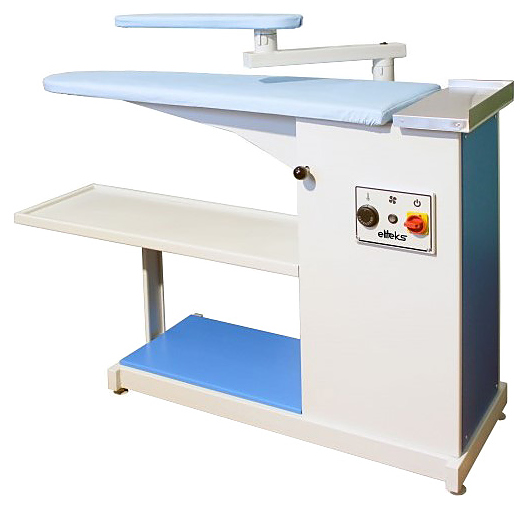 Гладильный стол Eliteks ГС-118.41 используется в небольших прачечных, гостиницах, салонах красоты, больницах и детских учреждениях для влажно-тепловой обработки фасонных изделий. Модель оснащена полкой для белья, нагреваемой поворотной рукавной платформой и полкой для установки утюга. Особенности:
