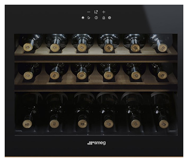 Винный шкаф Smeg CVI618NR предназначен для создания оптимальных условий для сохранения всех вкусовых свойств разливного вина в барах, ресторанах, специализированных магазинах, частных домах, квартирах, отелях и офисах. Корпус выполнен из меди, дверца - из черного стекла, полки - из дерева. Особенности: