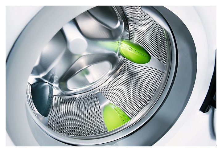 Технология 3D-Washing: инновационная конструкция с 6 ребрами разной жесткости и микроперфорацией барабана для эффективной стирки с перемещением белья в 3 плоскостях