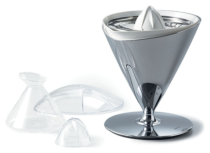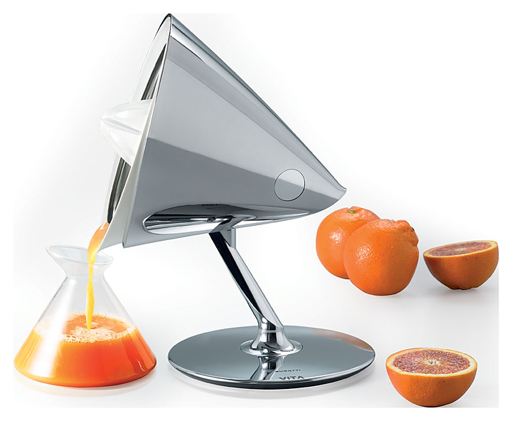 Соковыжималка Bugatti VITA позволит получить свежий, насыщенный витаминами сок из апельсинов, лимонов, грейпфрутов и прочих цитрусовых. Готовый сок наливается в емкость посредством наклона прибора. Корпус устройства, вращающийся на 60° вокруг ножки, гарантирует удобство использования и безопасность работы. Яркий и необычный дизайн от Innocenzo Rifino и Lorenzo Ruggieri делает данную модель стильной деталью интерьера. Особенности: