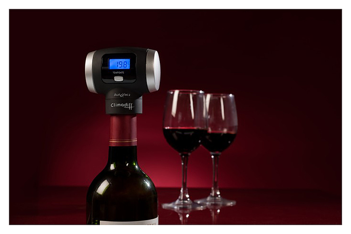 Автоматическая винная пробка Climadiff AutoVac2 используется в ресторанах, специализированных магазинах, отелях, в частных домах или квартирах для удаления воздуха из уже откупоренной бутылки вина, создавая вакуум и тем самым препятствуя окислению напитка. Благодаря такой пробке сохраняются все обонятельные и вкусовые свойства вина. Аксессуар оснащен датчиком давления, позволяющим избежать утечек воздуха, ЖК-дисплеем с индикацией температуры (в °С и F) и сроком хранения и работает от 2 батареек AAA LR03 1,5 В (в комплект не входят).
