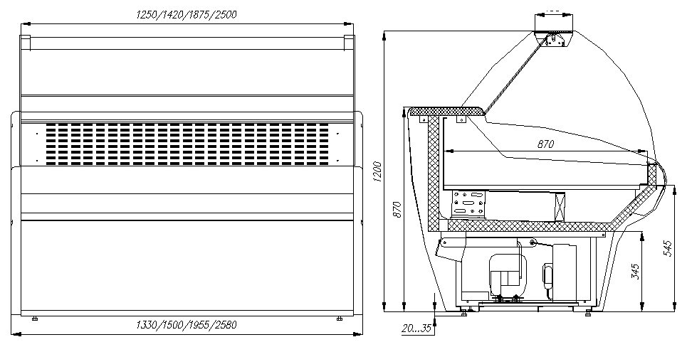Витрина холодильная Carboma Bavaria G110 VM 1,25-1 (ВХС-1,25 Bavaria G110) (динамика, с боковинами)