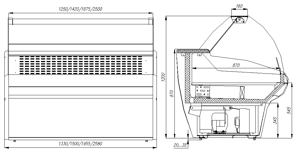 Витрина холодильная Carboma Bavaria G110 VV 1,5-1 (ВХСр-1,5 Bavaria G110) (динамика, с боковинами)