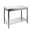 Производственный стол Кобор СПР-60/60/П предназначен для обработки продуктов питания и хранения кухонного инвентаря на предприятиях общественного питания и торговли. Разборный каркас выполнен из оцинкованной стальной квадратной трубы 40х40 мм, столешница - из нержавеющей стали AISI 430 с усилением из ЛДСП. Внимание! На фото аналогичная модель другого размера. Видео