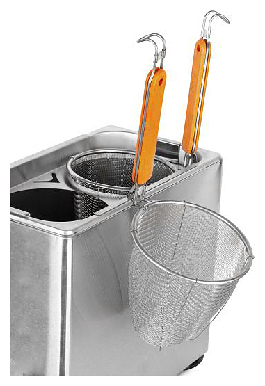 Макароноварка Foodatlas EH-802N используется на предприятиях общественного питания и торговли для отваривания различных видов макаронных изделий и других продуктов из теста. Модель оснащена краном для слива воды. Корпус выполнен из нержавеющей сталь 430, толщиной 0,5 мм, камеры - из нержавеющей стали 201, толщиной 0,8 мм, корзины - нержавеющей стали 201. В комплект поставки входят макароноварка, 2 корзины, инструкция на русском языке. Особенности: