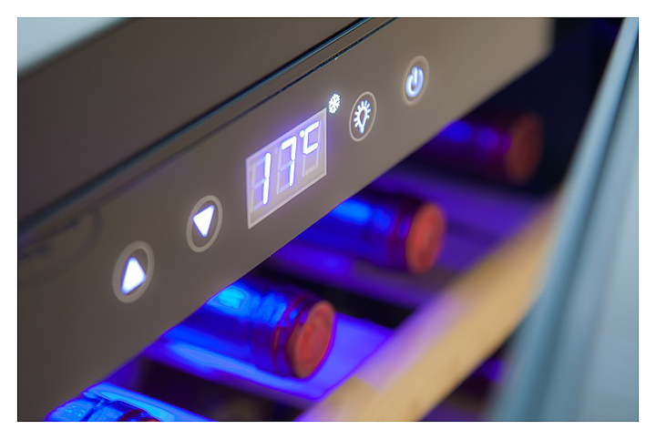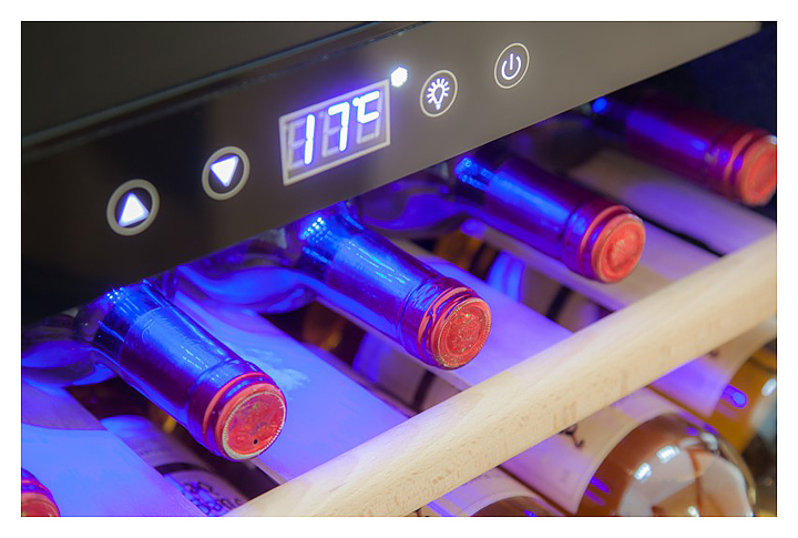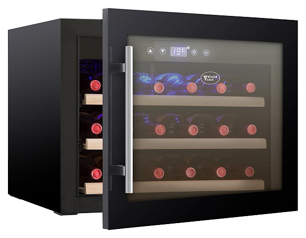 Винный шкаф Cold Vine C18-KBB1 создает оптимальные условия для сохранения всех вкусовых свойств разливного вина. Модель оснащена встроенным вентилятором, 3 деревянными полками, 2 из которых на метабоксах и голубой светодиодной подсветкой. Корпус выполнен из окрашенной в черный цвет стали, дверь с черной рамой - из тонированного стеклопакета с защитой от УФ-излучения. Особенности: