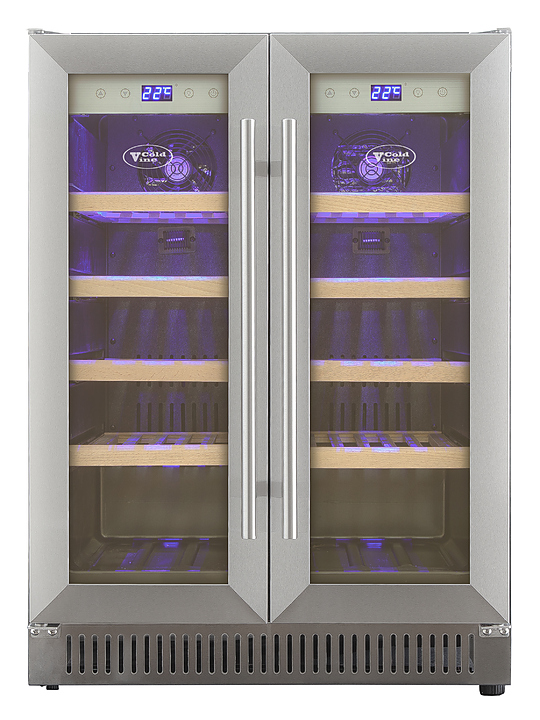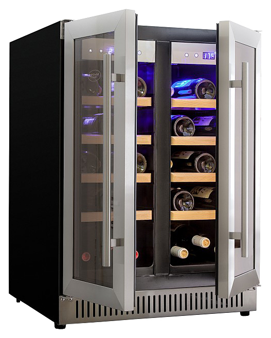 Винный шкаф Cold Vine C30-KST2 создает оптимальные условия для сохранения всех вкусовых свойств разливного вина. Модель оснащена встроенным вентилятором, 4 деревянными полками на метабоксах в каждом отделении и голубой светодиодной подсветкой. Корпус выполнен из окрашенной в черный цвет стали, дверь со стальной рамой - из тонированного стеклопакета с защитой от УФ-излучения. Особенности: