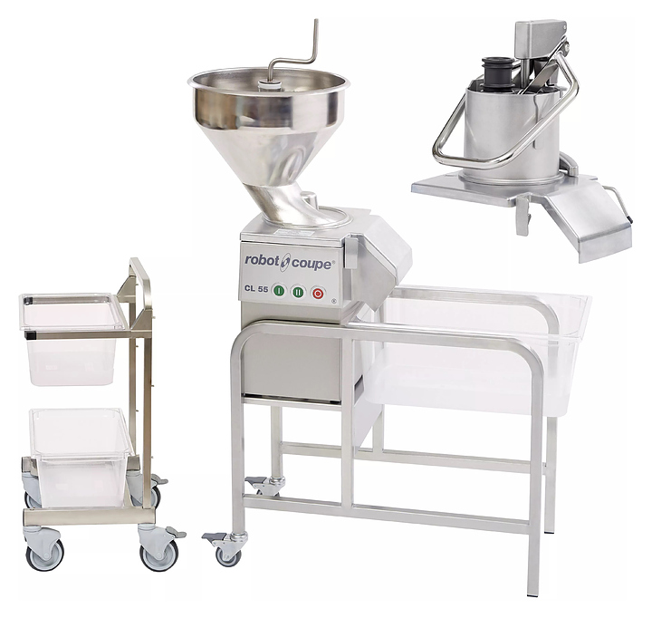 Овощерезка Robot Coupe CL55 используется на предприятиях общественного питания и торговли для нарезки овощей, фруктов, грибов, твердого сыра и колбас и дальнейшего использования их в качестве ингредиентов для приготовления супов, салатов, гарниров и пр. Модель оснащена 3 загрузочными отверстиями: широкой воронкой XL с рычагом для нарезки объёмных овощей (вмещает до 15 помидоров и качан капусты целиком), автоматической и цилиндрической - длинных и нежных.