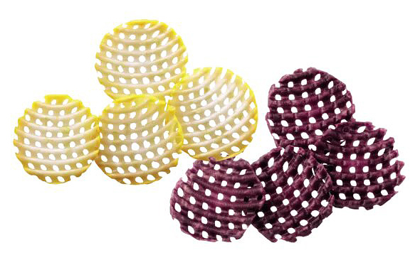 Диск для нарезки слайсами Robot Coupe 28199 используется совместно с овощерезкой CL50 Gourmet для нарезки овощей и фруктов волнистыми ломтиками с дырочками гофры и дальнейшего использования их в качестве ингредиентов для приготовления супов, салатов, гарниров и пр. на предприятиях общественного питания и торговли. Характеристики: