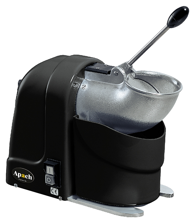 Измельчитель льда Apach AIC2 используется на предприятиях общественного питания и торговли для получения ледяной крошки, которая применяется для приготовления коктейлей и напитков, а также для выкладки и охлаждения разных видов продуктов. Модель оснащена регулятором степени помола. Кожух и бункер выполнены из термоформованного полистирола для пищевых продуктов, загрузочная и выходная часть, рычаг - из полированного алюминия, нож - из никелированной и прокаленной нержавеющей стали AISI 420. Дополнительные характеристики: