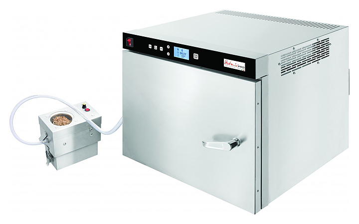 Аппарат для копчения HotmixPRO Smoke используется на предприятиях общественного питания и торговли для холодного и горячего копчения мяса, рыбы, птицы, сыров, масла и других продуктов. Модель совместима с дегидратором Dry и со всеми термомиксерами HotmixPRO. Корпус изготовлен из нержавеющей стали AISI 304. Особенности: